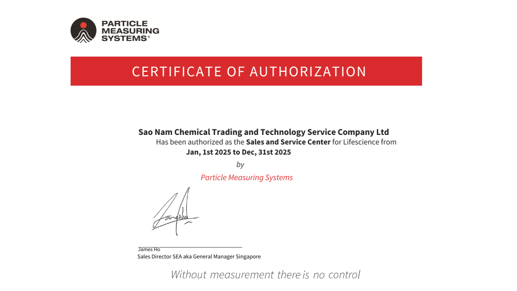 Sao Nam hiện là đại lý chính Hãng ủy quyền và là trung tâm kỹ thuật dịch vụ ủy quyền của hãng Particle Measuring Systems (https://www.pmeasuring.com/) – nhà sản xuất hàng đi thế giới về nghiên cứu và sản xuất thiết bị đếm tiểu phân và lĩnh vực giám sát phòng sạch.