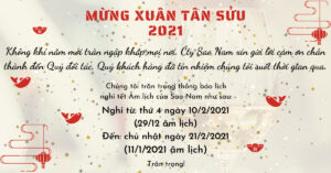 Lịch nghỉ tết nguyên đán Tân Sửu 2021 của công ty Sao Nam